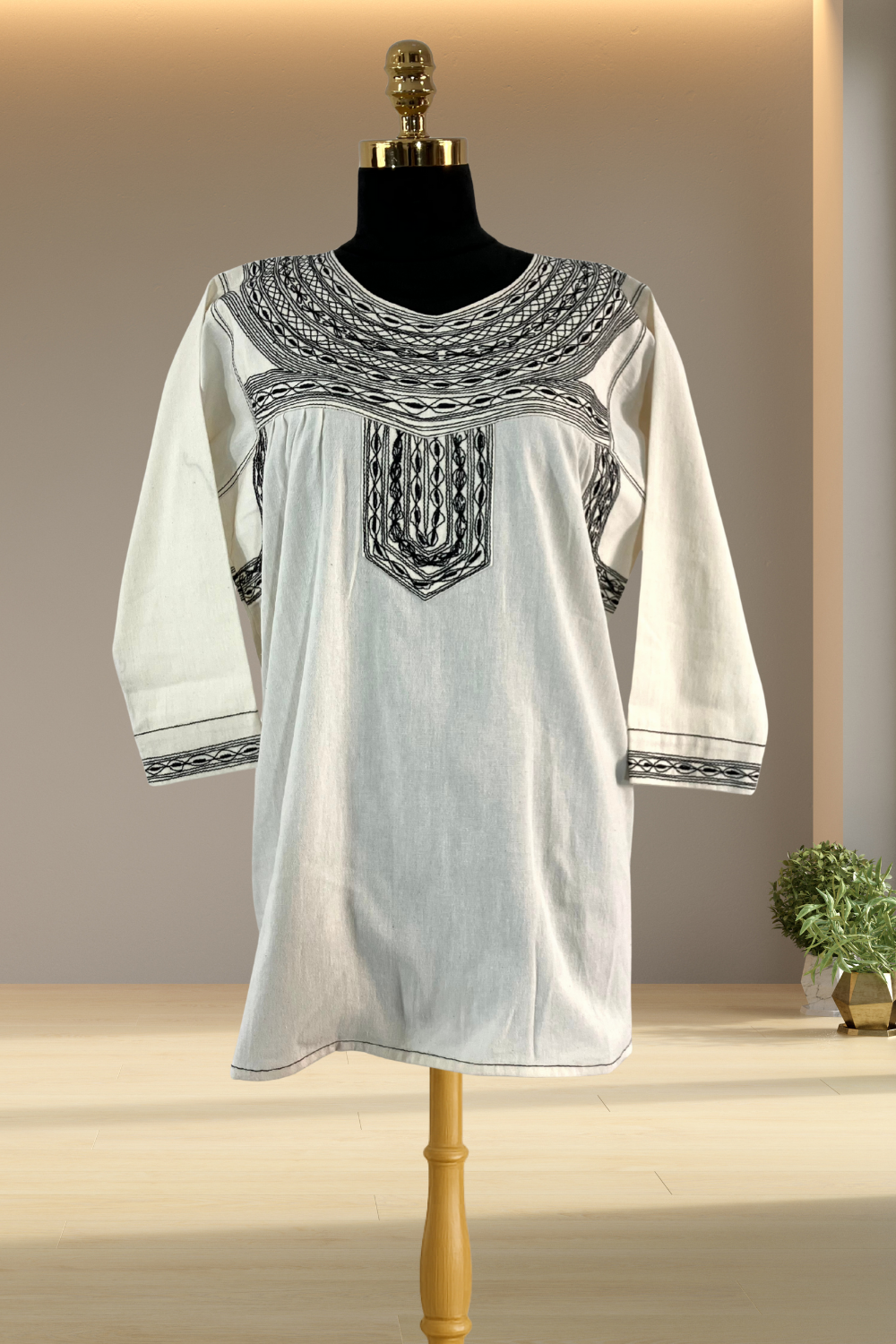 Nuestro estilo de blusa es tipo huipil con corte corto. Te recomendamos revisar cuidadosamente las medidas que incluimos en la descripción para que elijas la talla que mejor se adapte a ti.