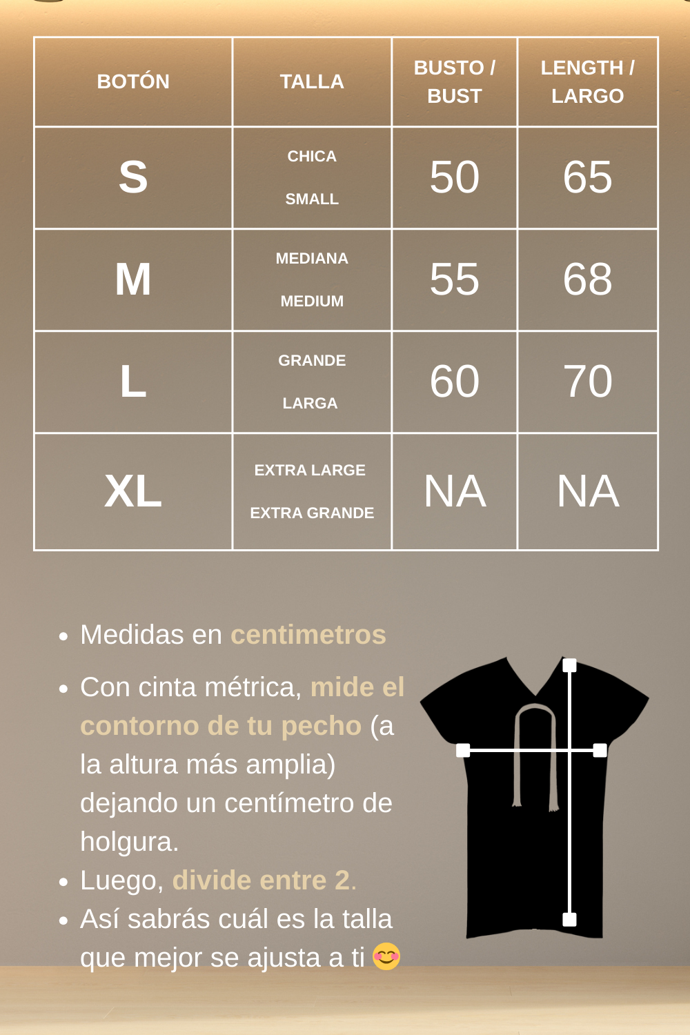 2️⃣ Compara tu medida con la guía de tallas que aparece en las imágenes de cada blusa o vestido.