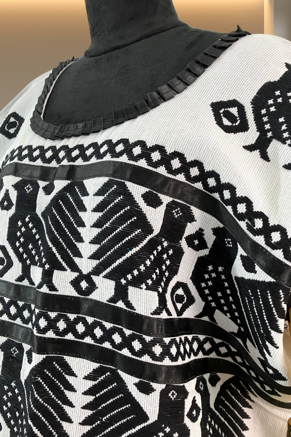Una prenda llena de historia y carácter. El huipil de Huautla combina el blanco y negro en un tejido que resalta aves y elementos geométricos inspirados en la iconografía tradicional de Oaxaca. 🖤🤍